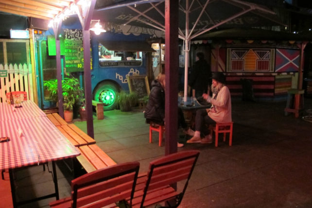 Começo pelo meu preferido – e o mais longe do centrinho turístico, dentre os que eu conheci. Na verdade, nem posso falar do pub em si, porque passei o tempo todo nos fundos do bar, no genial The Big Blue Bus. Deixa eu explicar: